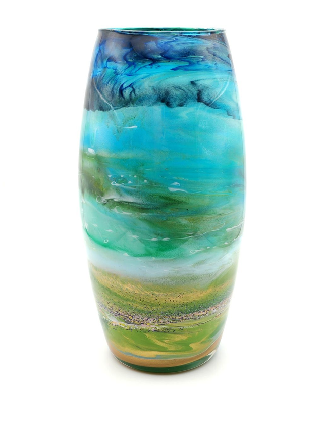 Original acrylic abstract seascape painting on the inside of a large oval glass vessel. Each unique piece is hand painted and signed by artist Darren Cole in his studio on the Isle of Harris.