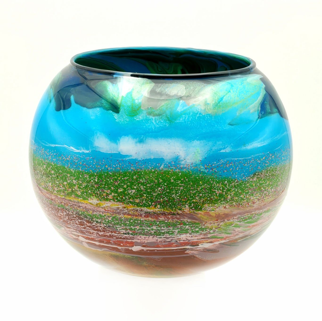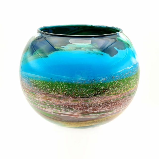 Original acrylic abstract Harris seascape painting on the inside of a mini glass globe. Each unique piece is hand painted and signed by artist Darren Cole in his studio on the Isle of Harris.